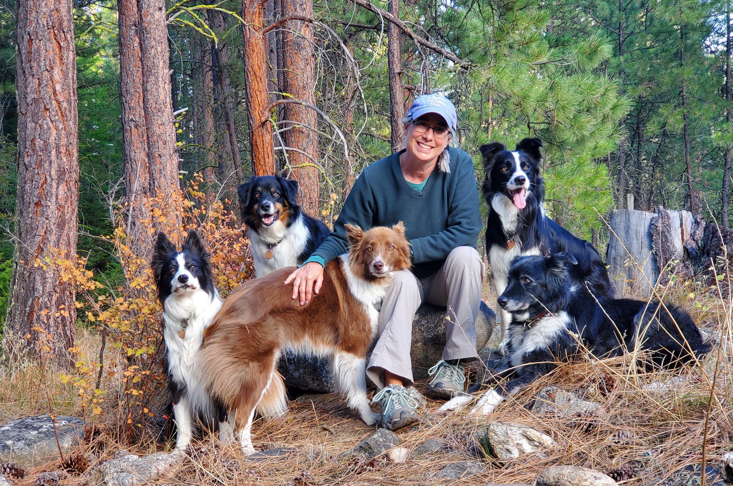 Elf is an almost 15 year old Border Collie who was rescued from a horrific hoarding case in Texas. He came to live with me in 2010 and has always seemed grateful to have moved to Montana. Elf has numerous health issues due to his rough start but he is able to hike and is very talented at nosework. His absolute favorite thing to do is to herd the rest of the pack while we hike, with a pine cone in his mouth.